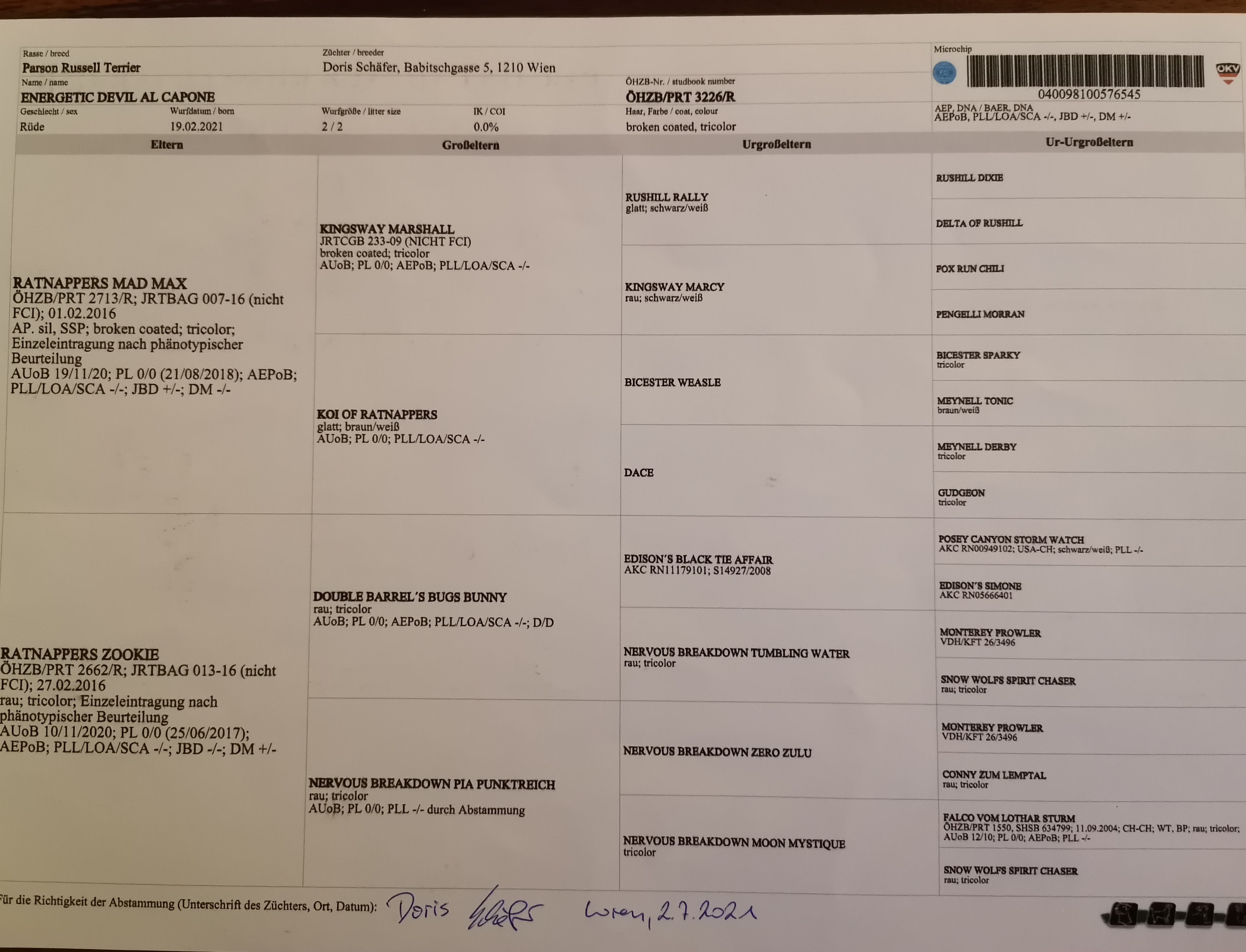 | Bär vom Kaisergebirge x Wild Sweet Devils Aviva >> click Pedigree 18.03.2020 |