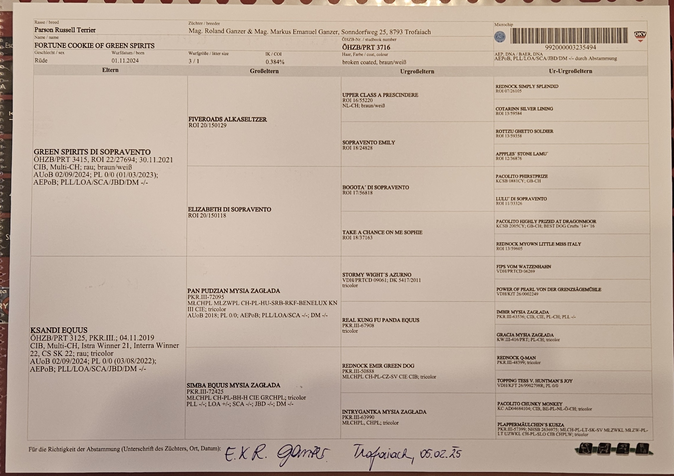 Twister Idefix x Elfriede von Igelhöhe >> click Pedigree 28.01.2024 |